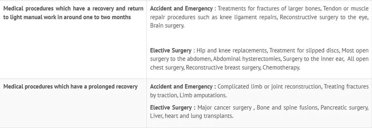 Should an employee require an operation or a medical procedure that requires time off work our policies help insure them against a loss of income by providing a cash benefit which is linked to the normal recovery time for their treatment.